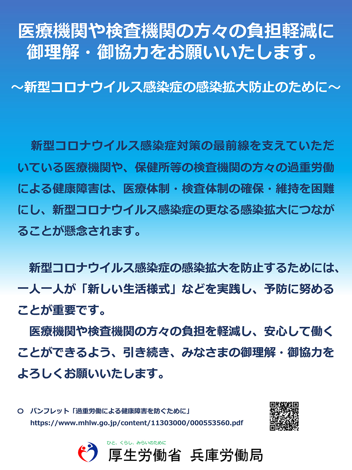 医療機関や検査機関の方々の負担軽減に御理解・御協力をお願いいたします。
